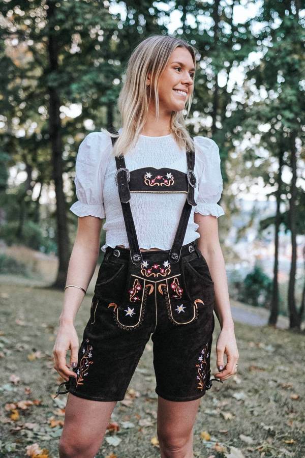 Gertrud Lederhose er en stilig og moderne lederhose tilpasset kvinnekroppen! Den er laget av høykvalitets semsket lær, har nydelige broderte detaljer, og gjør at du kan skille deg litt ut i mengden! Lommene gjør at du trygt kan oppbevare nødvendigheter som telefon, lommebok og nøkler.